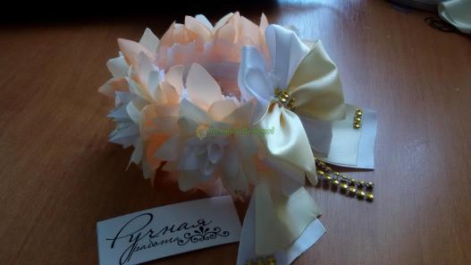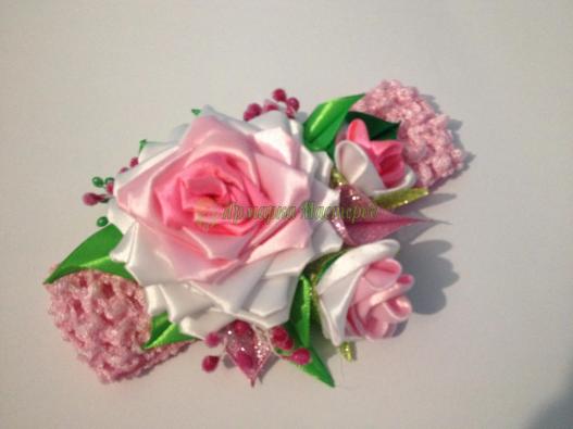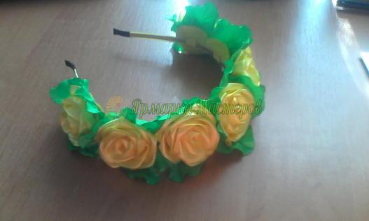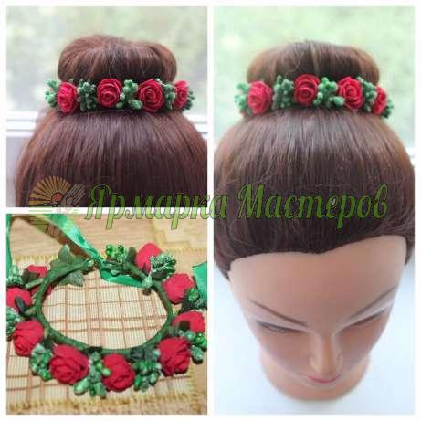 ободок -метал декорированый лентой, розы и листики