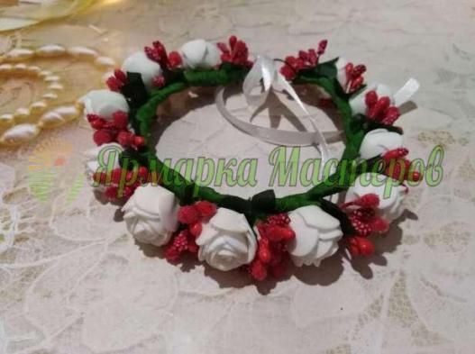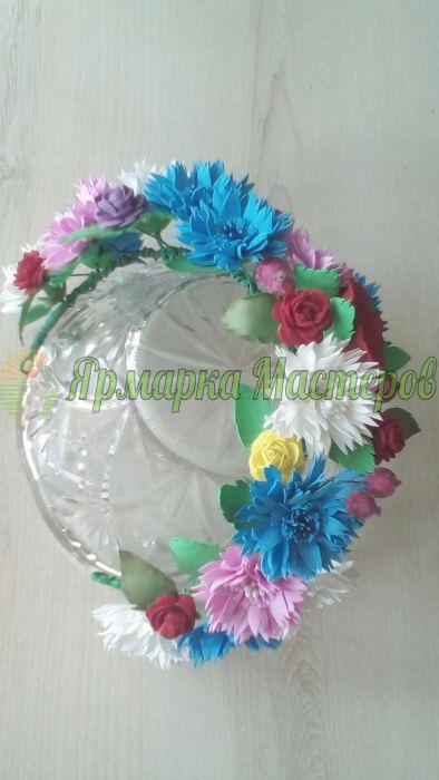 Венок с цветами из фоамирана ручной работы.Ленточк