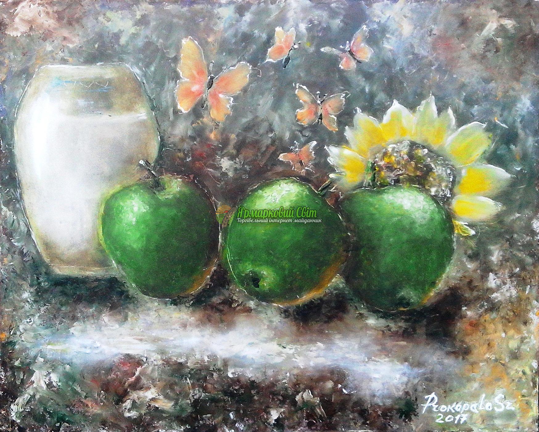 Картина маслом. Натюрморт с яблоками.Картина напис