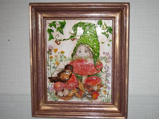 Картинка из соленого теста,розукрашена гуашью и по